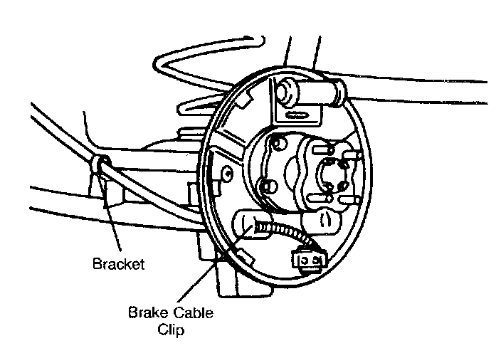 18. Remove parking brake cable bracket bolt, then remove parking brake cable from backing plate.