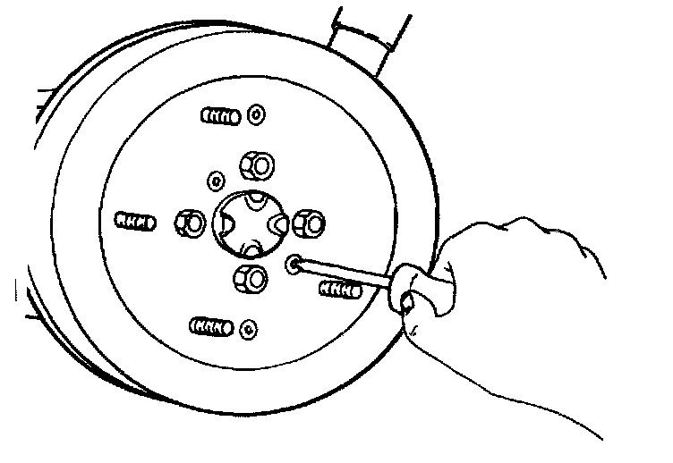 5. Loosen and remove the four hub nuts and screws.