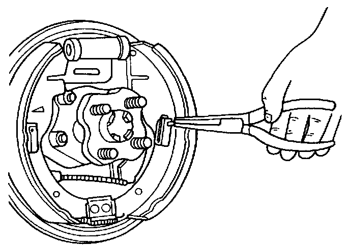 8. Remove the return spring with a brake spring wrench or pliers.