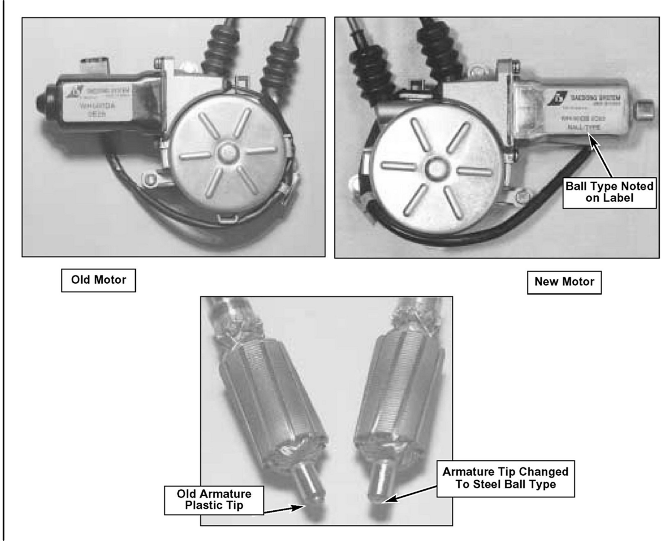Some Sportages built before 3/11/02 may experience intermittent operation. To correct this condition, an improved power window motor and regulator assembly has been implemented. The new window regulator may be used as a field fix for in-use complaint vehicles built before 3/11/02.