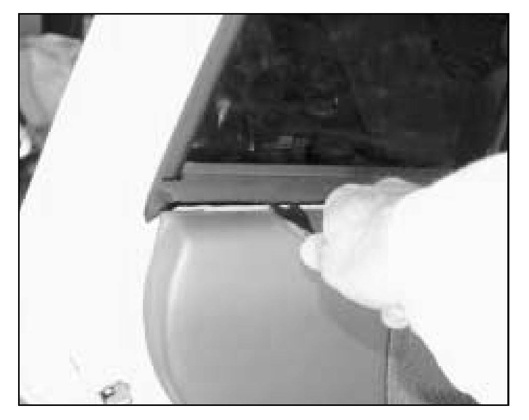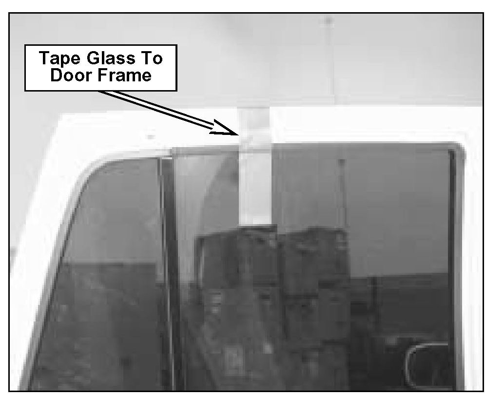 9. Slide glass to all the way up and use duct or masking tape to secure glass to door frame.