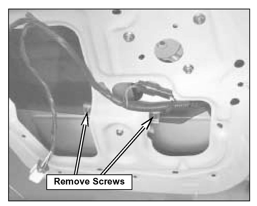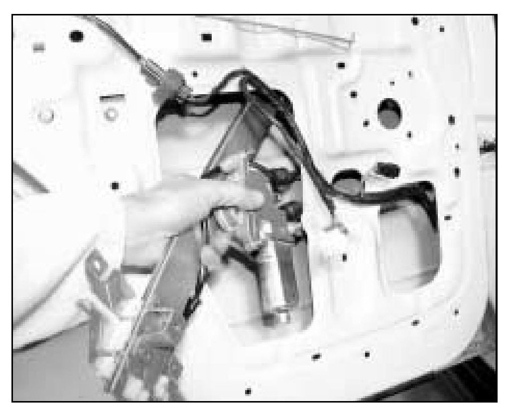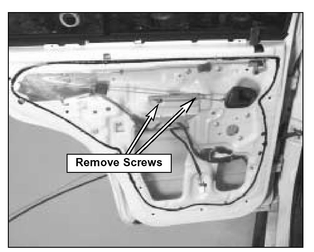12. Remove the window regulator through the large access hole in door panel.