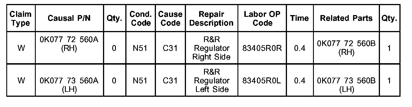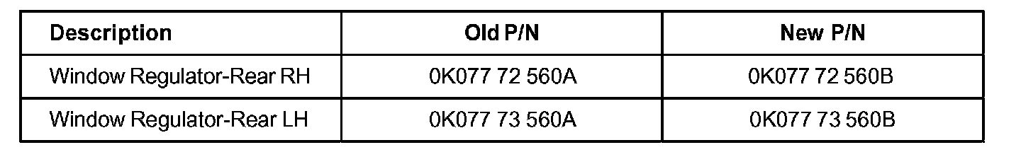 This bulletin provides information relating to improved Sportage rear window regulators.