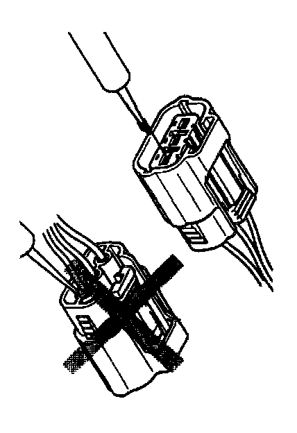 2. Check terminals of waterproof connectors from connector side because they cannot be accessed from harness side.