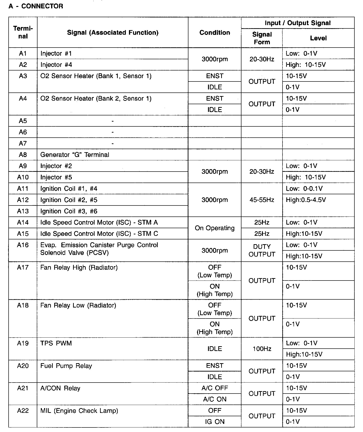Connector A - (A1-A22):
