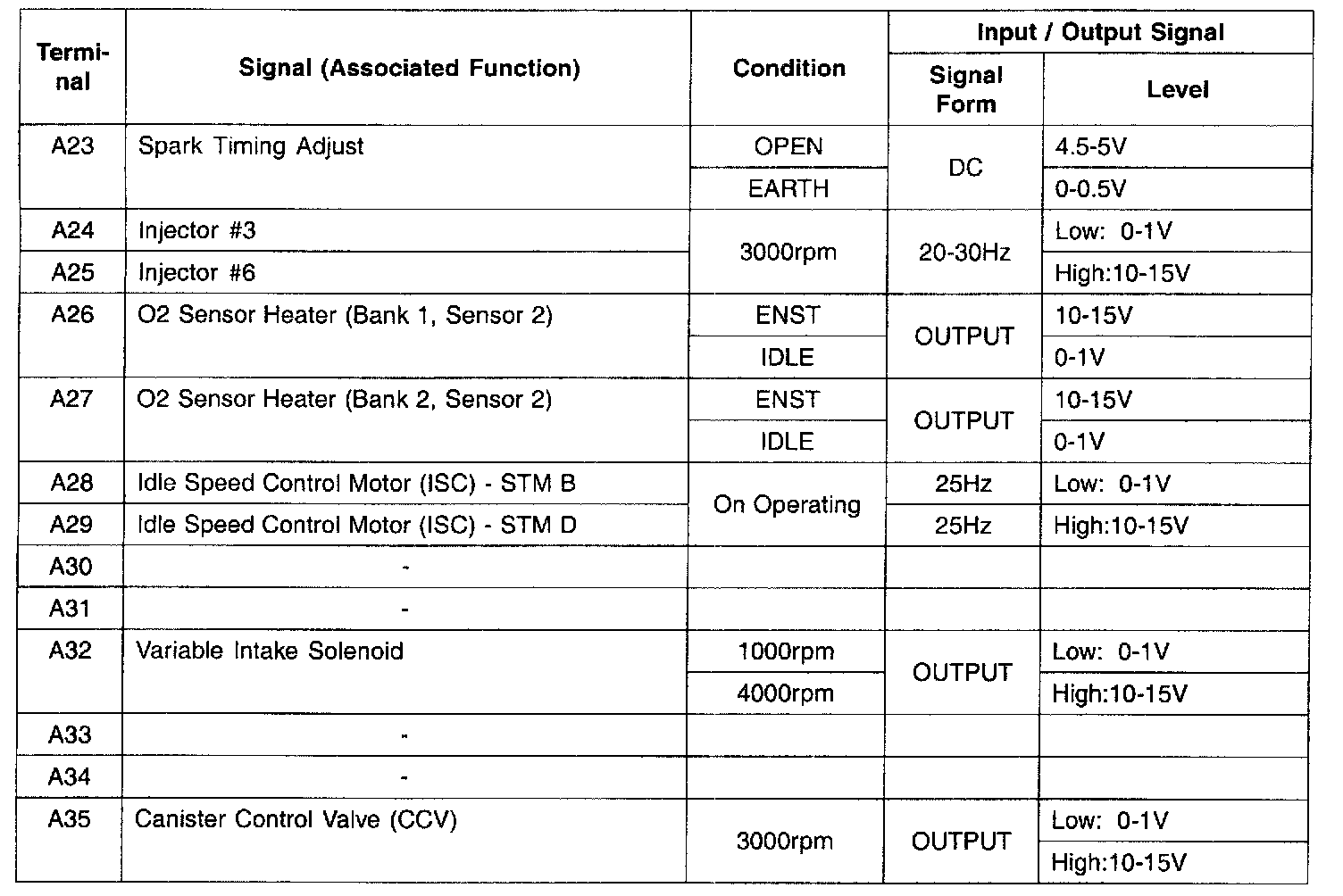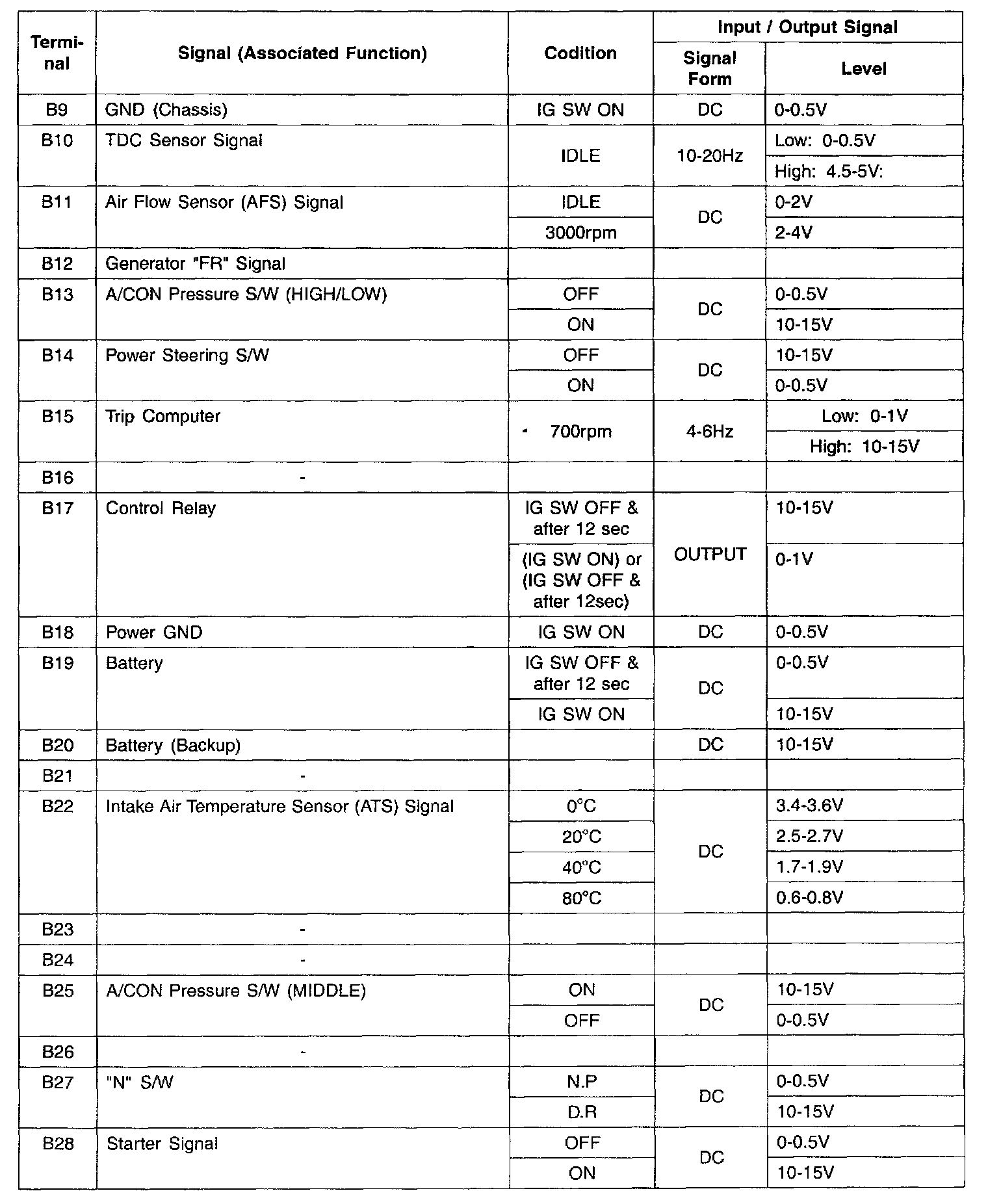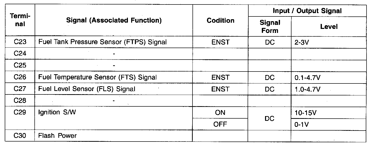 ECU Input / Output Check Sheet