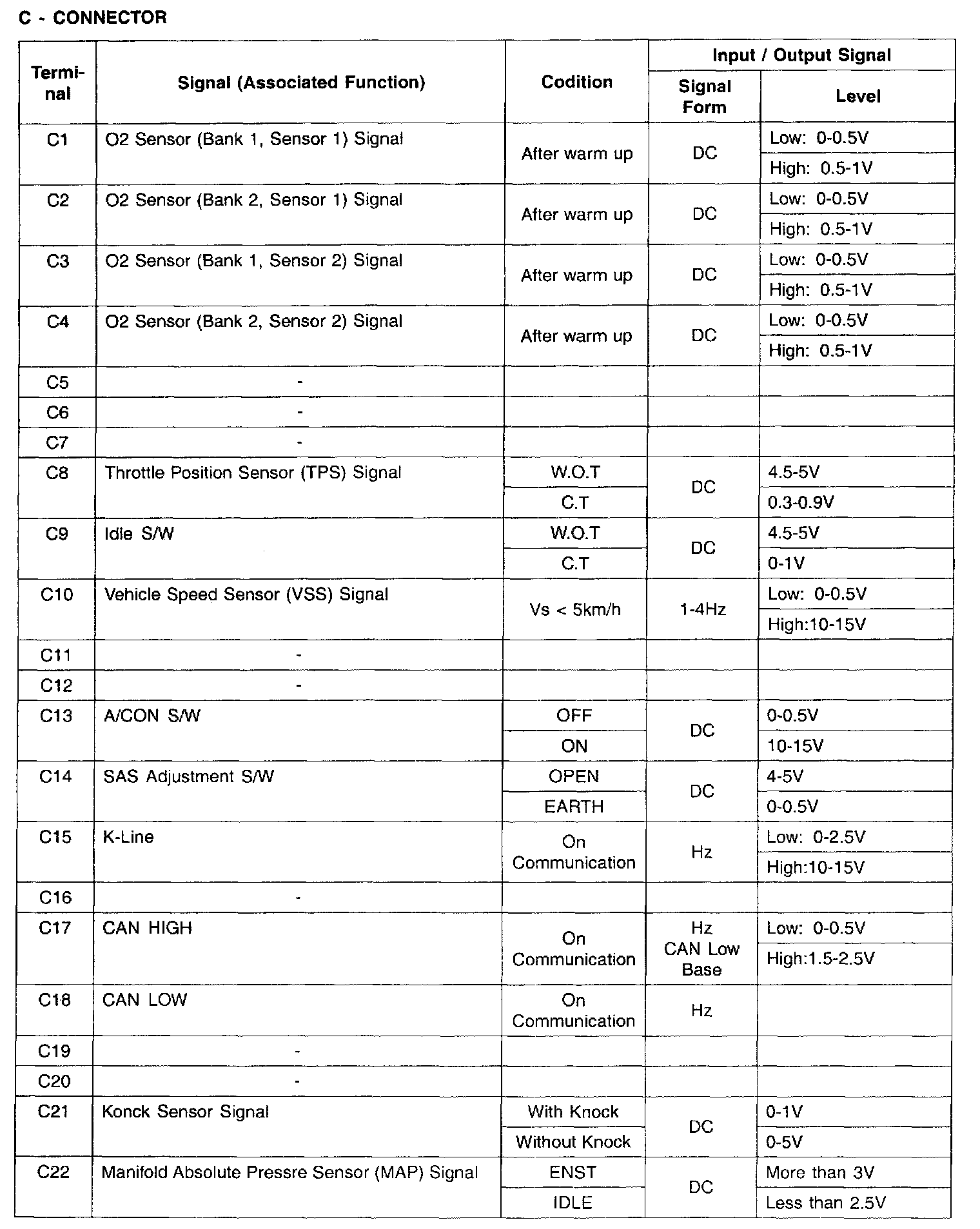 Connector C - (C1-C22):