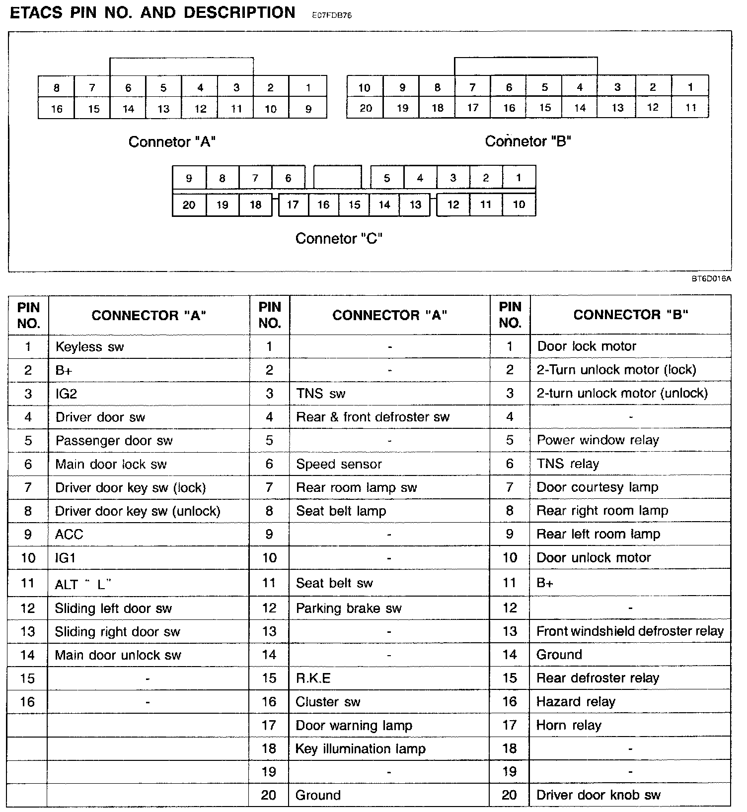 ETACS Pin No. And Description: