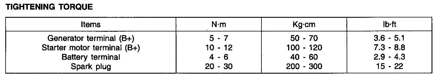 Specifications - Tightening Torque: