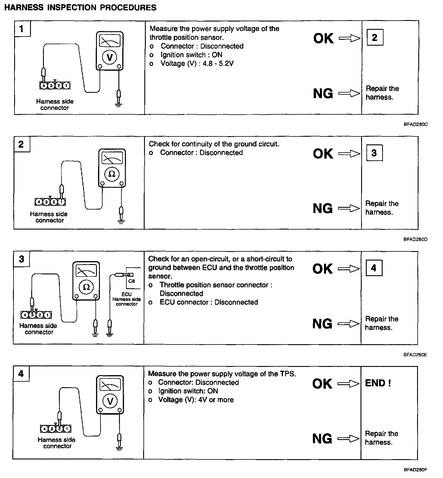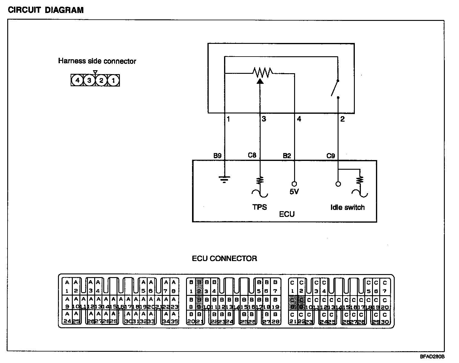 NOTE: Before inspecting the TPS, verify the basic idle speed is as specified.