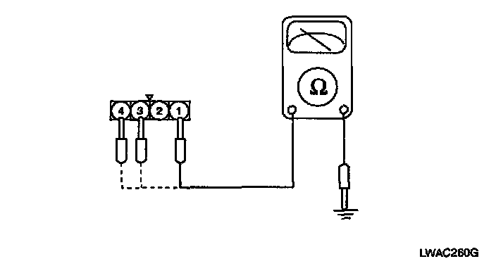 2. Measure resistance between terminal 1 (sensor ground) and terminal 4 (sensor power).
