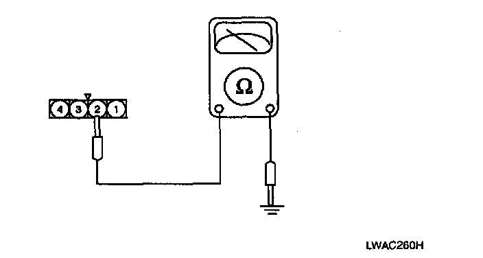 3. Connect a pointer type ohmmeter between terminal 1 (sensor ground) and terminal 3 (sensor output).