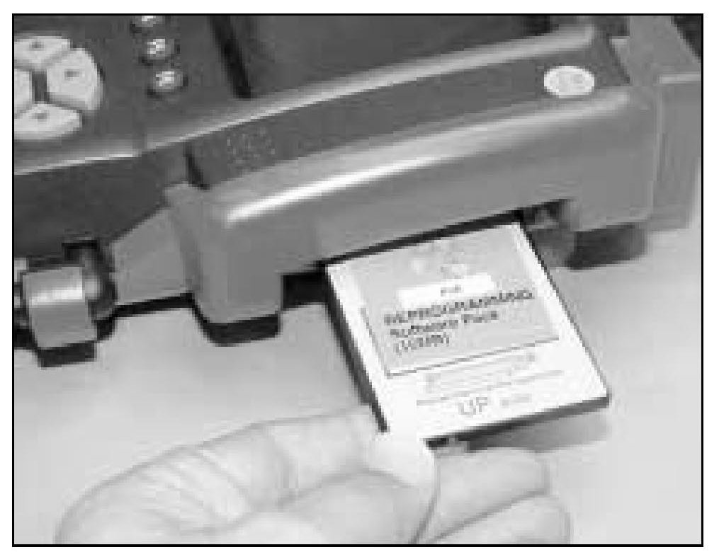 3. Remove the program card from the upper slot on the Hi-Scan Pro tool and insert the reprogramming card with yellow sticker. Program card needs to be loaded with the latest software.