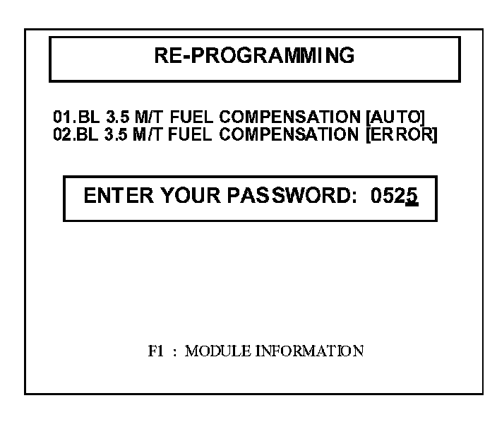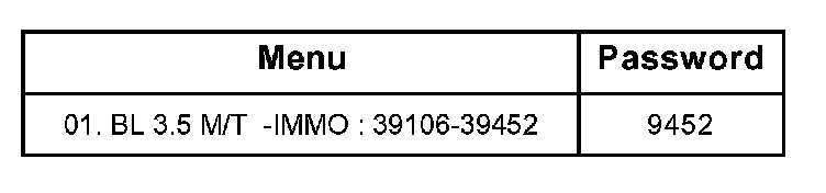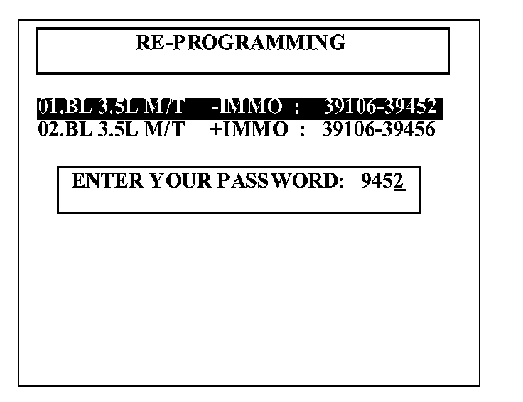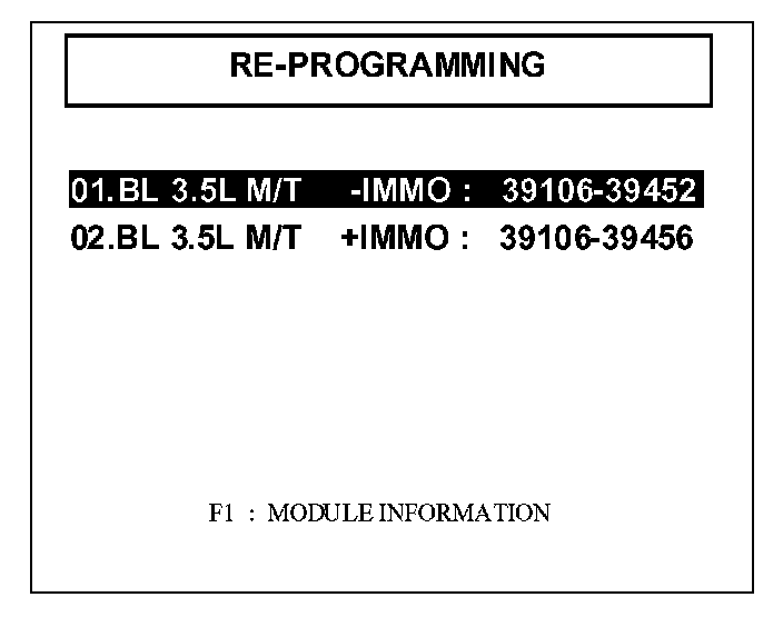 16. Select option 01: "BL3.5 M/T -IMMO: 39106-39452 and press "ENTER".
