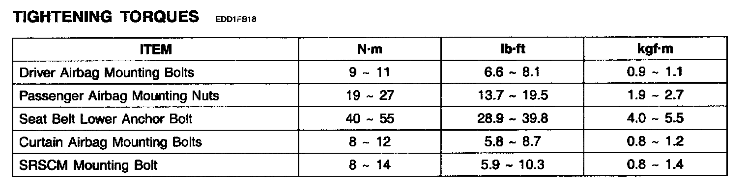 Tightening Torques:
