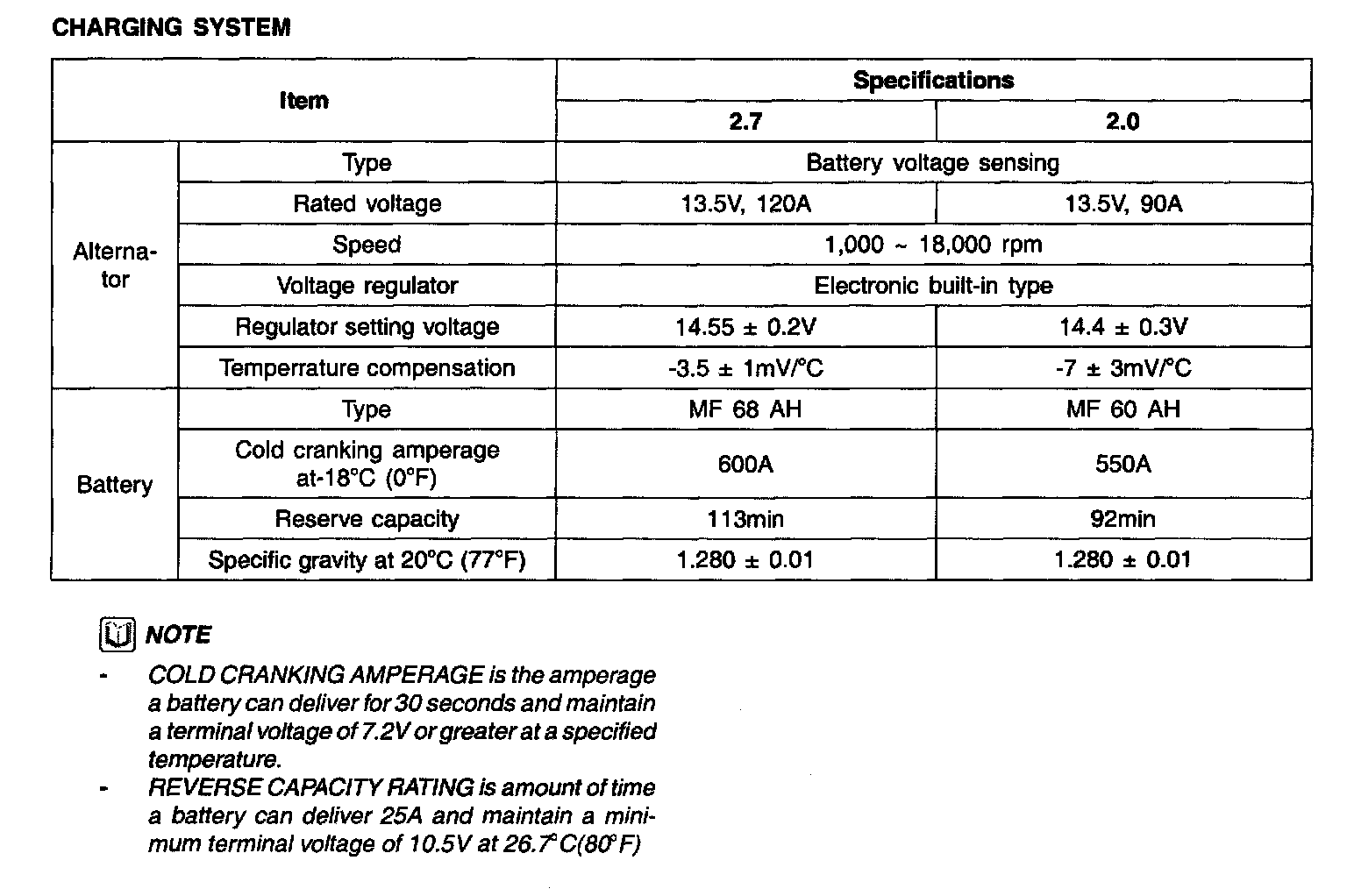 Specification - Charging System:
