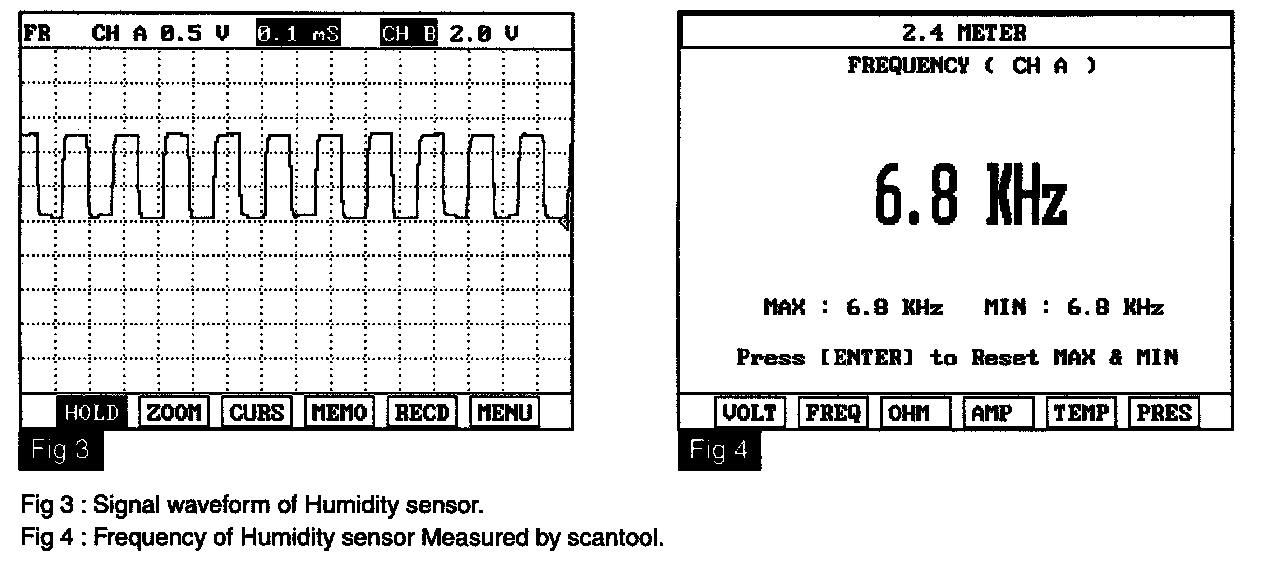 3. Measure Frequency between terminal 2 of Humidity sensor and chassis ground.