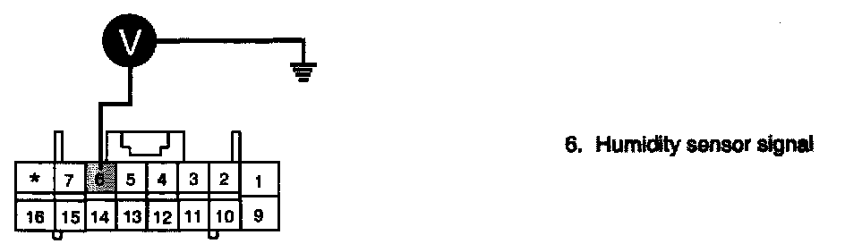 3. Measure voltage value between terminal "5" of Humidity Sensor and chassis ground.