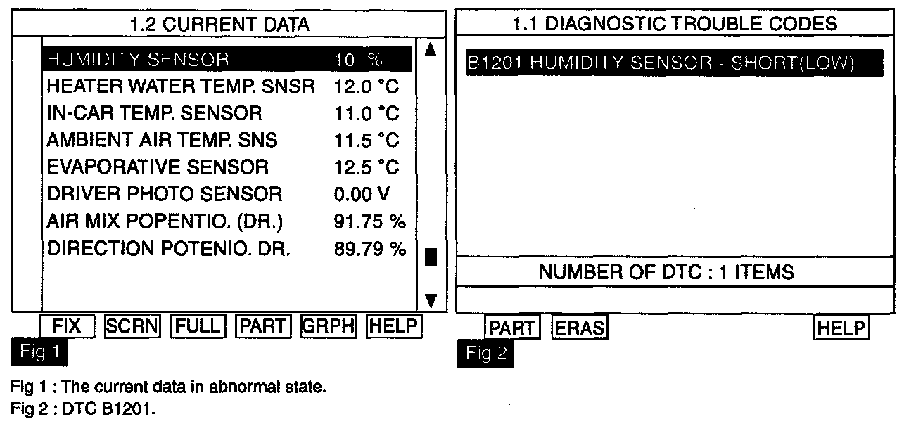 4. Are the DTC B1201 present and is parameter of "Humidity Sensor" fixed?