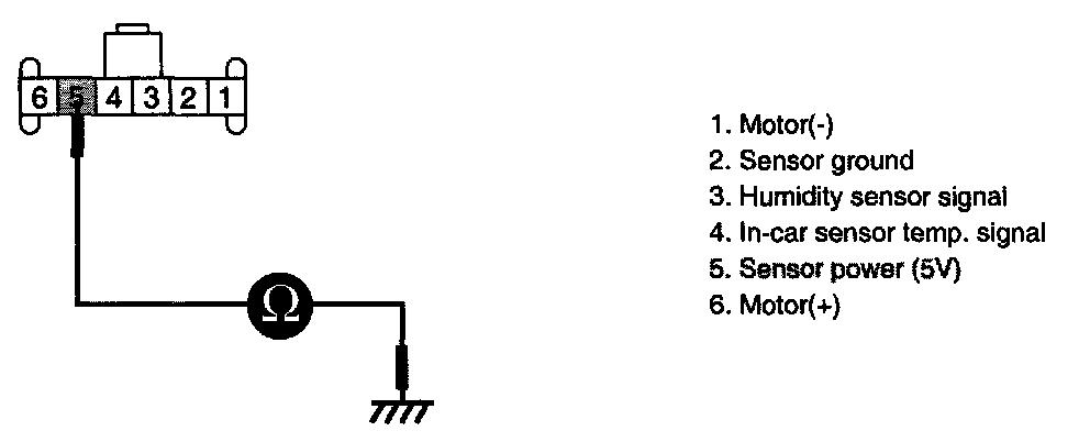 3. Measure resistance between terminal "5" of Humidity Sensor and chassis ground.