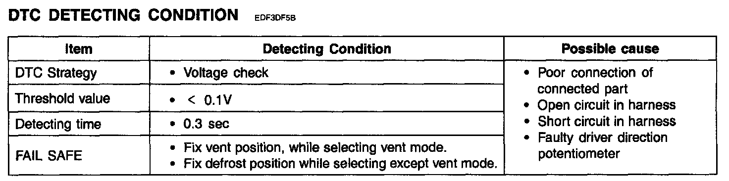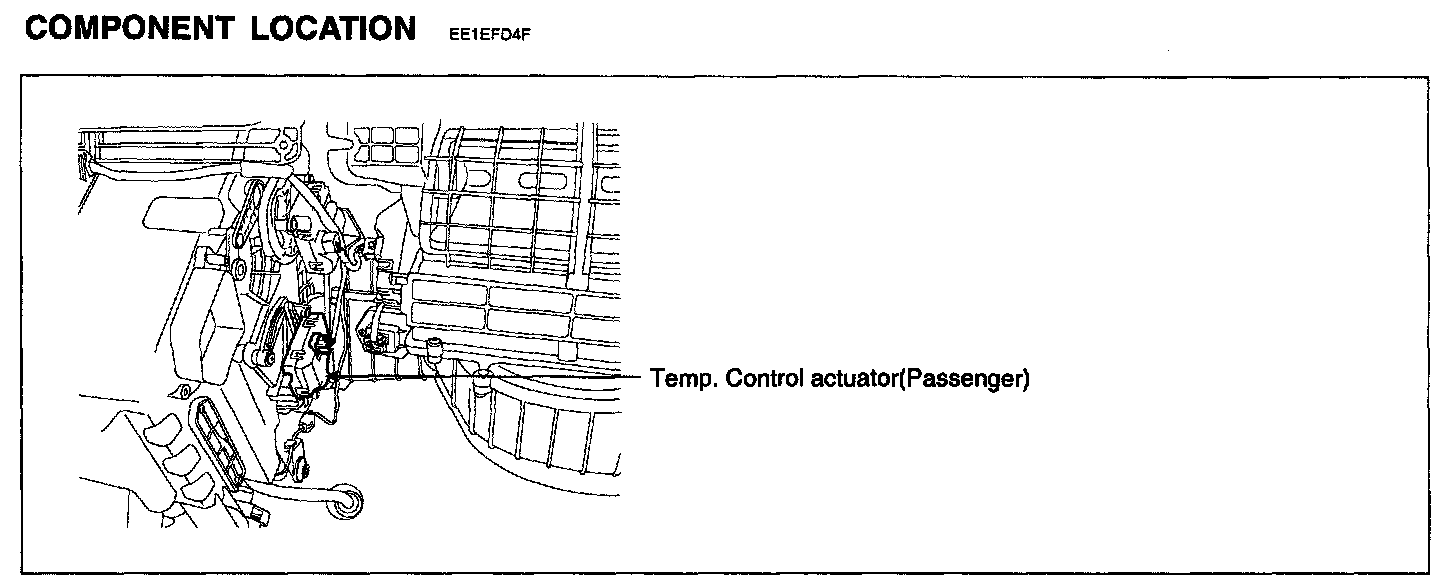 The mode control actuator mounted on heater unit, adjusts position of mode door by operating Direction Motor based on signal of A/C control unit. Pressing mode select switch makes the mode control actuator shift in order of vent -> B/L -> floor -> mix.