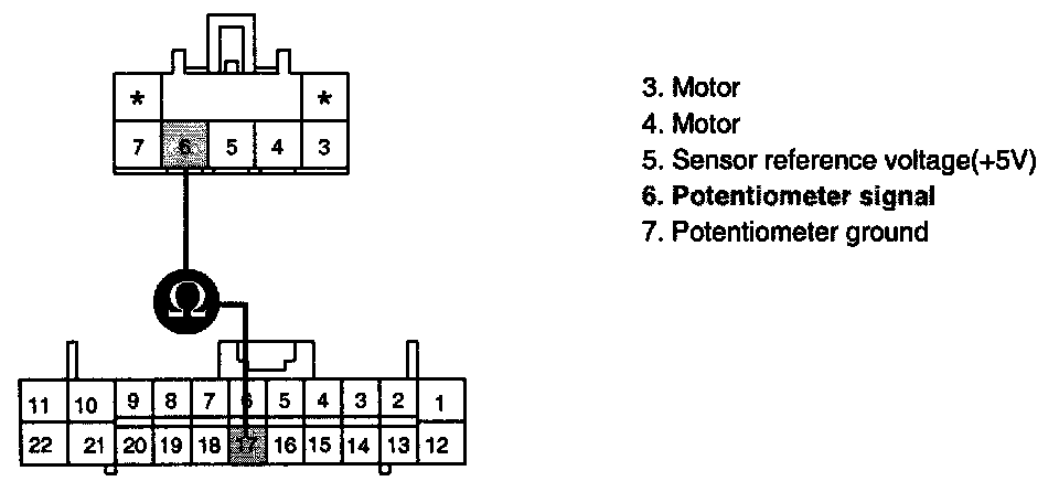 3. Measure resistance between terminal "6" of Driver Direction potentiometer and terminal "17" of A/C control unit.