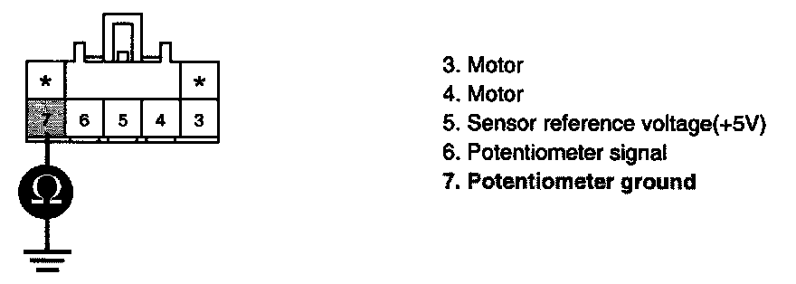 3. Measure resistance between terminal "7" of Driver Direction potentiometer and chassis ground.