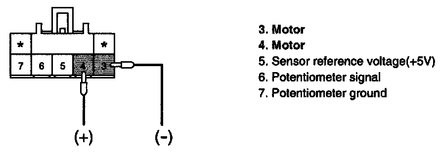 3. Verify that the mode actuator operates to the vent mode when connecting 12 V to the terminal "3" and grounding terminal "4".