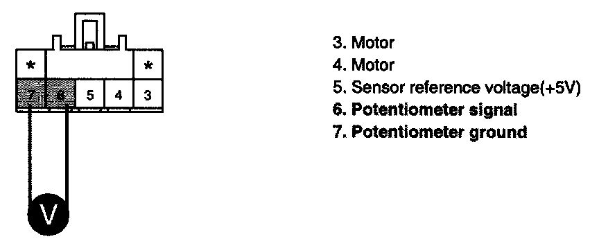 3. Measure voltage between terminal "6" and "7" of Driver Direction potentiometer as the mode switch is operated.