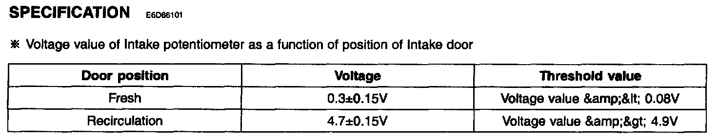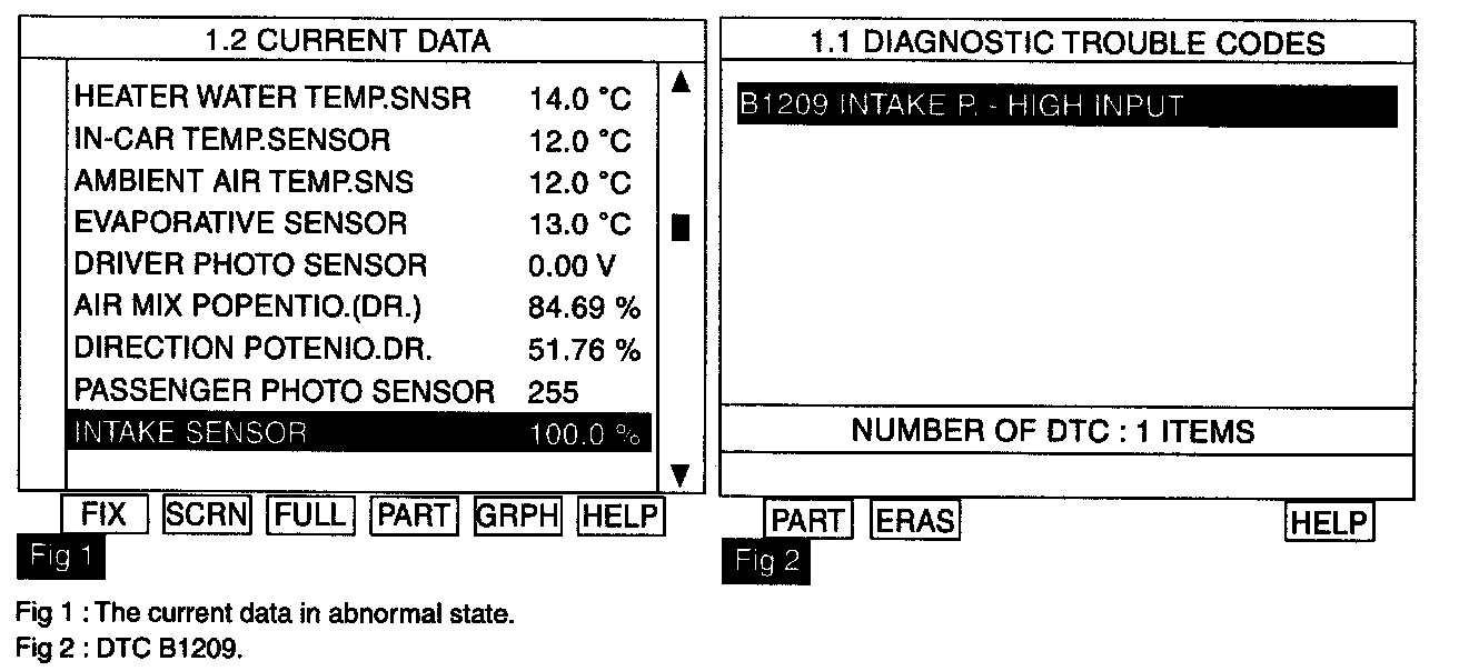 The A/C controller sets DTC B1209 if there is a short to power in the Intake potentiometer.
