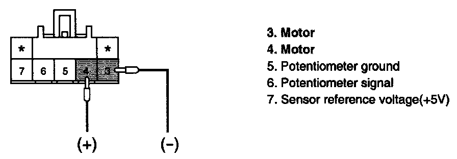 3. Verify that the temperature actuator operates to the fresh position when connecting 12 V to the terminal "3" and grounding terminal "4".