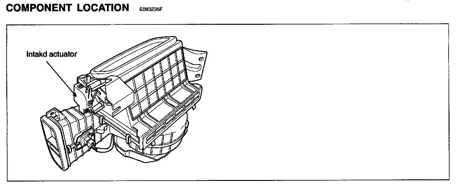 Intake door located at heater unit controls the inlet of car. When driver operates the intake switch, A/C controller recirculates mode signal from intake switch and operates intake door actuator to turn intake door to intended position. (with fresh mode signal, intake door is closed and with fresh mode signal, intake door is opened).
