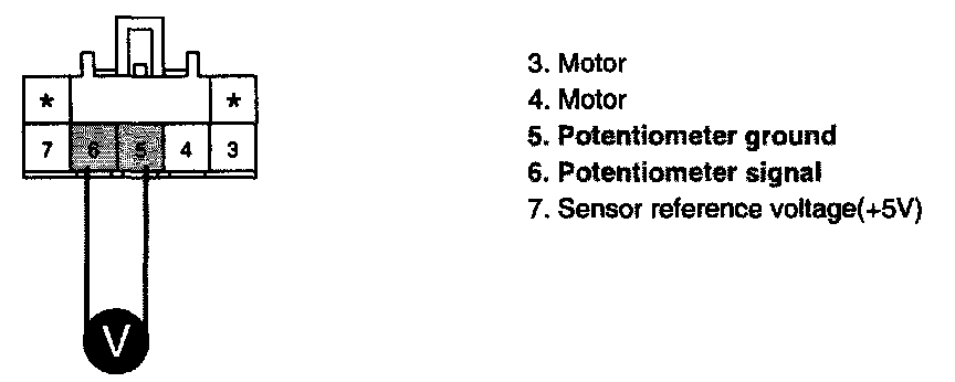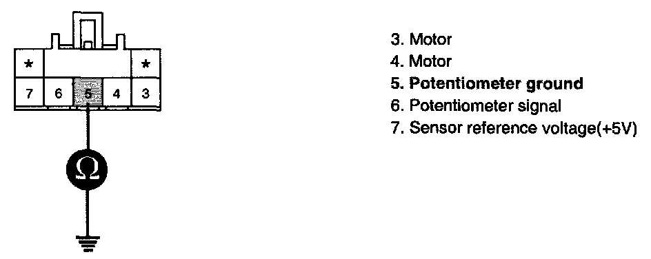 3. Measure resistance between terminal "5" of Intake Potentiometer and chassis ground.
