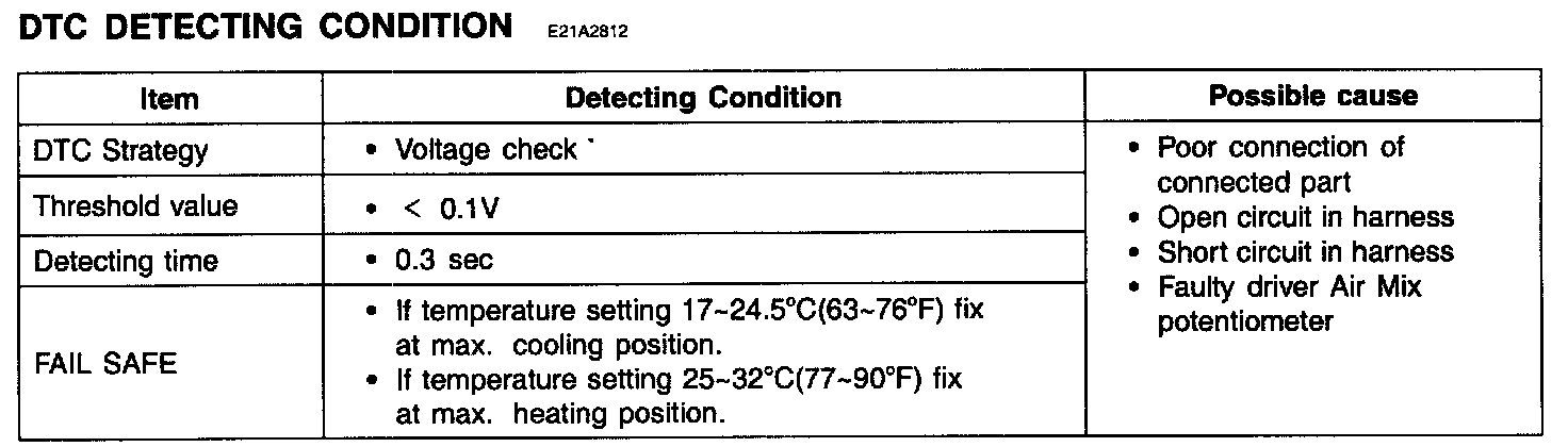 - Parameter of "Driver Air Mix Potentiometer" will be fixed at 100% (or any value above 90%), or 0% (or any value below 10%), if there is any fault in Driver Air Mix potentiometer.