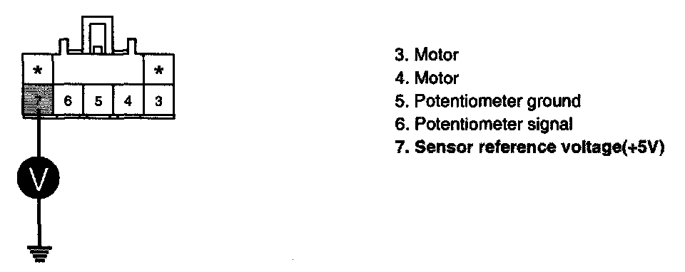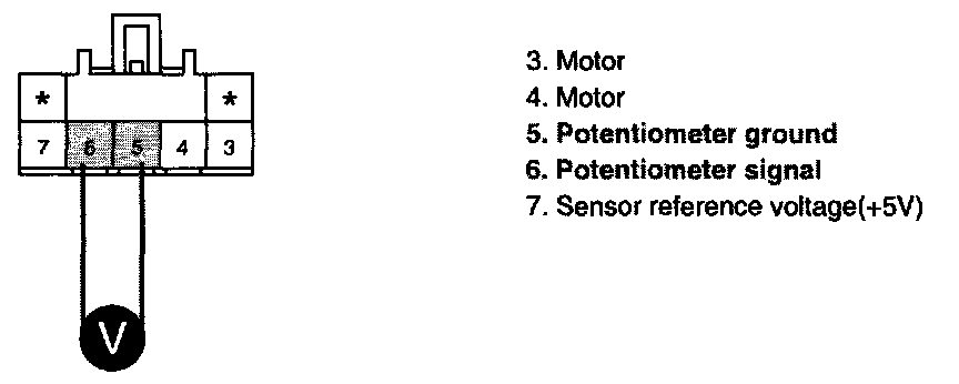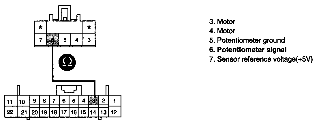 3. Measure voltage between terminal "7" of Driver Air Mix Potentiometer and chassis ground.