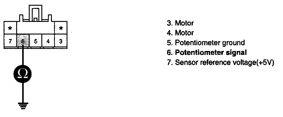 3. Measure resistance between terminal "6" of Driver Air Mix Potentiometer and chassis ground.