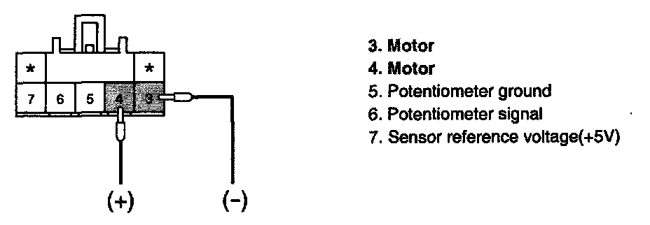 3. Verify that the temperature actuator operates to the hot position when connecting 12 V to the terminal "3" and grounding terminal "4".