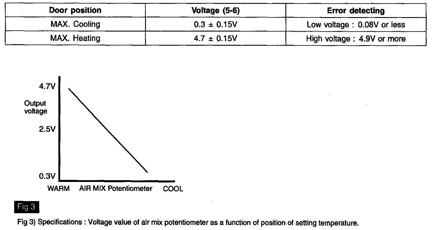 3. Measure voltage between terminal "5" and "6" of Driver Air Mix potentiometer while operating the temp. switch.