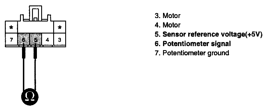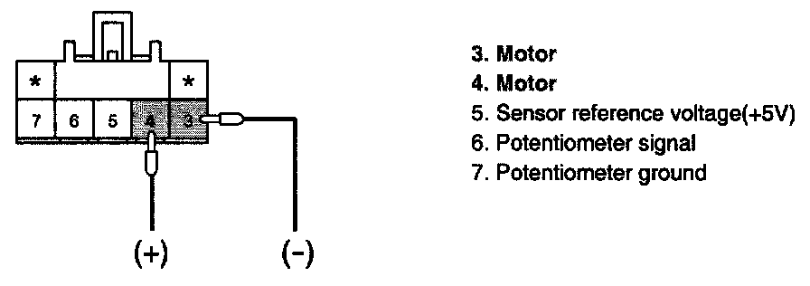 3. Verify that the temperature actuator operates to the hot position when connecting 12 V to the terminal "3" and grounding terminal "4".