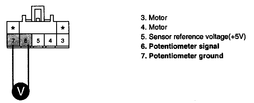 3. Measure voltage between terminal "6" and "7" of Rear Air Mix potentiometer while operating the temp. switch.