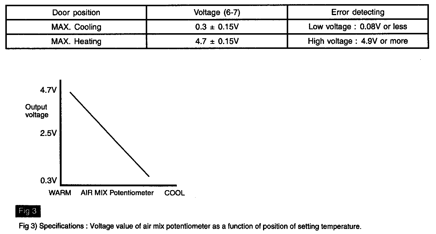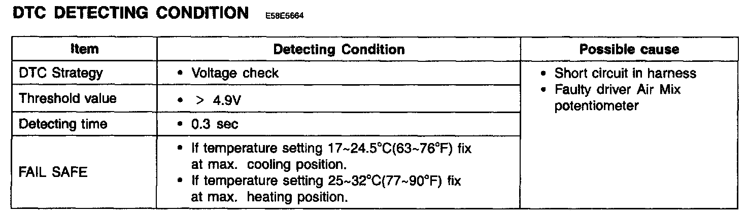 - Parameter of Rear Air Mix potentiometer" will be fixed at 100% (or any value above 90%), or 0% (or any value below 10%), if there is any fault in Rear Air Mix potentiometer.