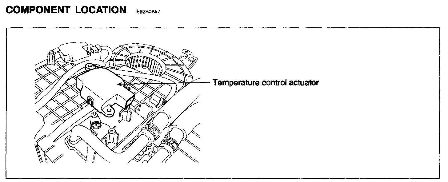 Temperature control actuator located at heater unit, regulates the temperature by the procedure as follows. Signal from control unit adjusts position of temp. door by operating temp. motor and then temperature will be regulated by the hot/cold air ratio decided by position of temp. door.