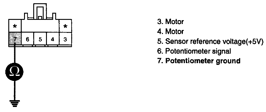 3. Measure resistance between terminal "7" of Rear Air Mix Potentiometer and chassis ground.