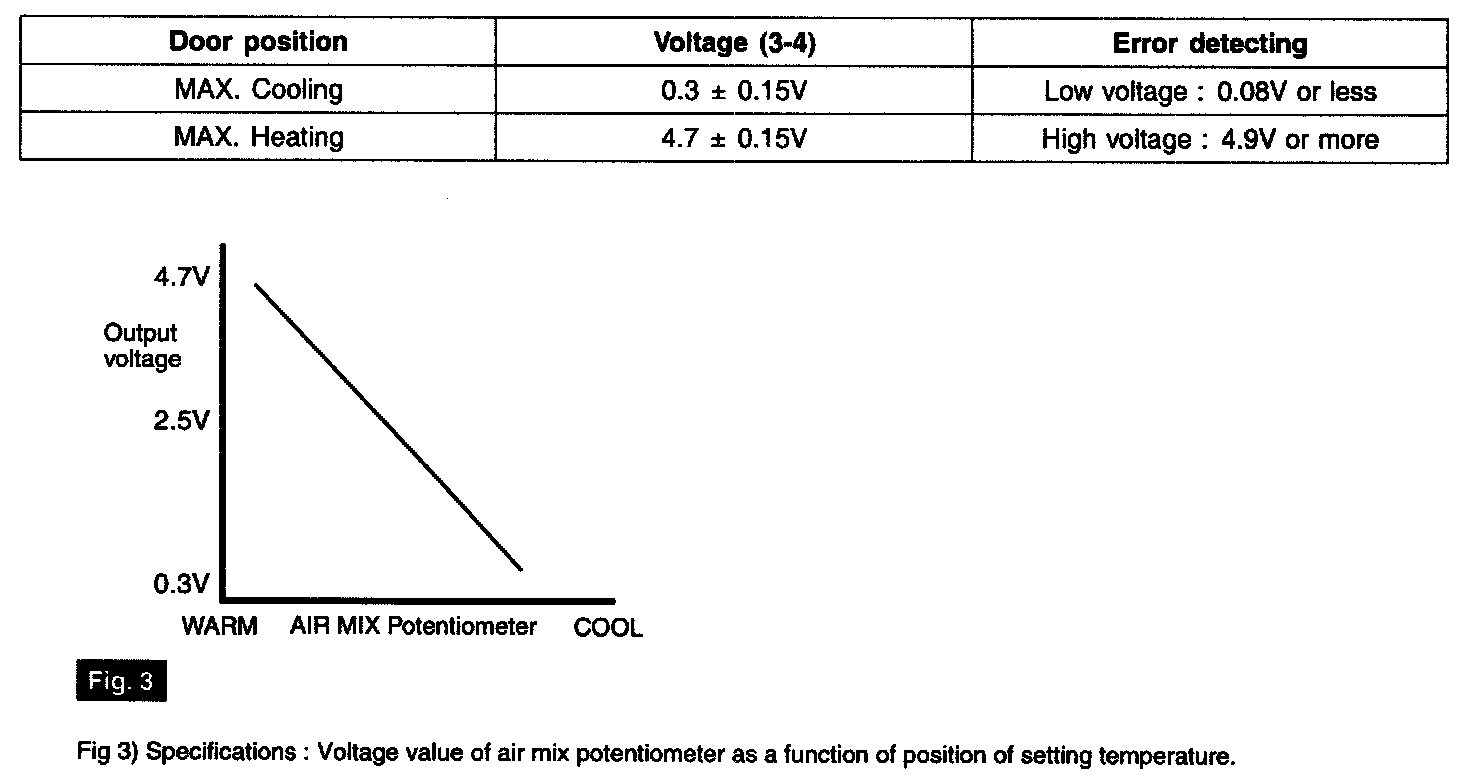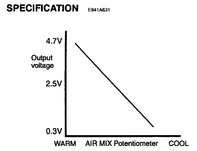 3. Measure voltage between terminal "5" and "6" of Driver Air Mix potentiometer while operating the temp. switch.