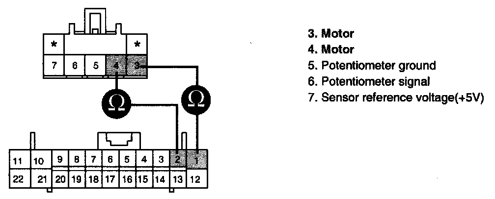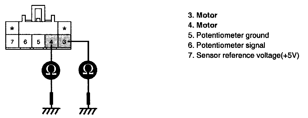3. Measure resistance between terminal "3,4" of Driver Air Mix Motor and chassis ground.