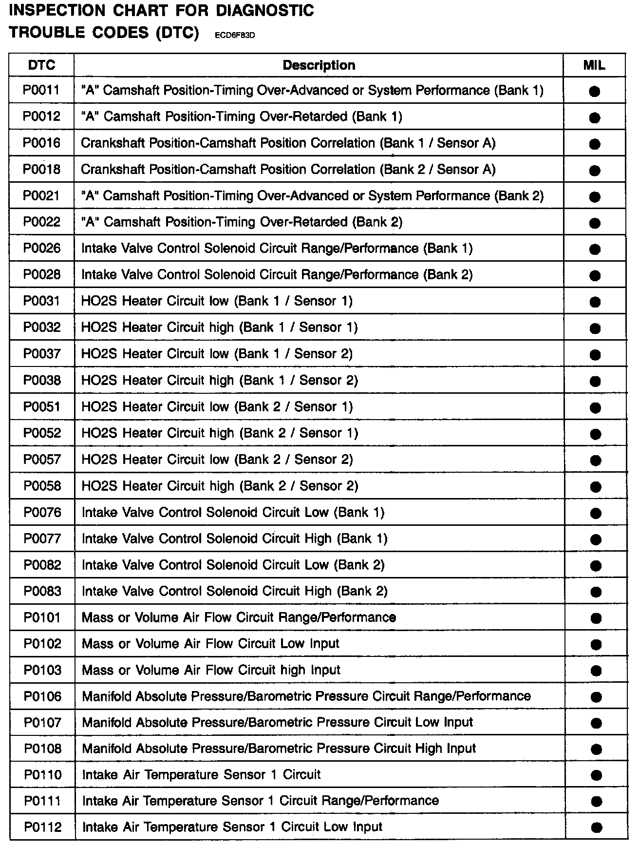 P0011 - P0112: