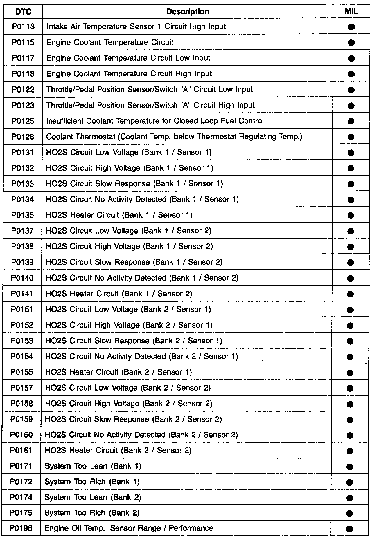 P0113 - P0196: