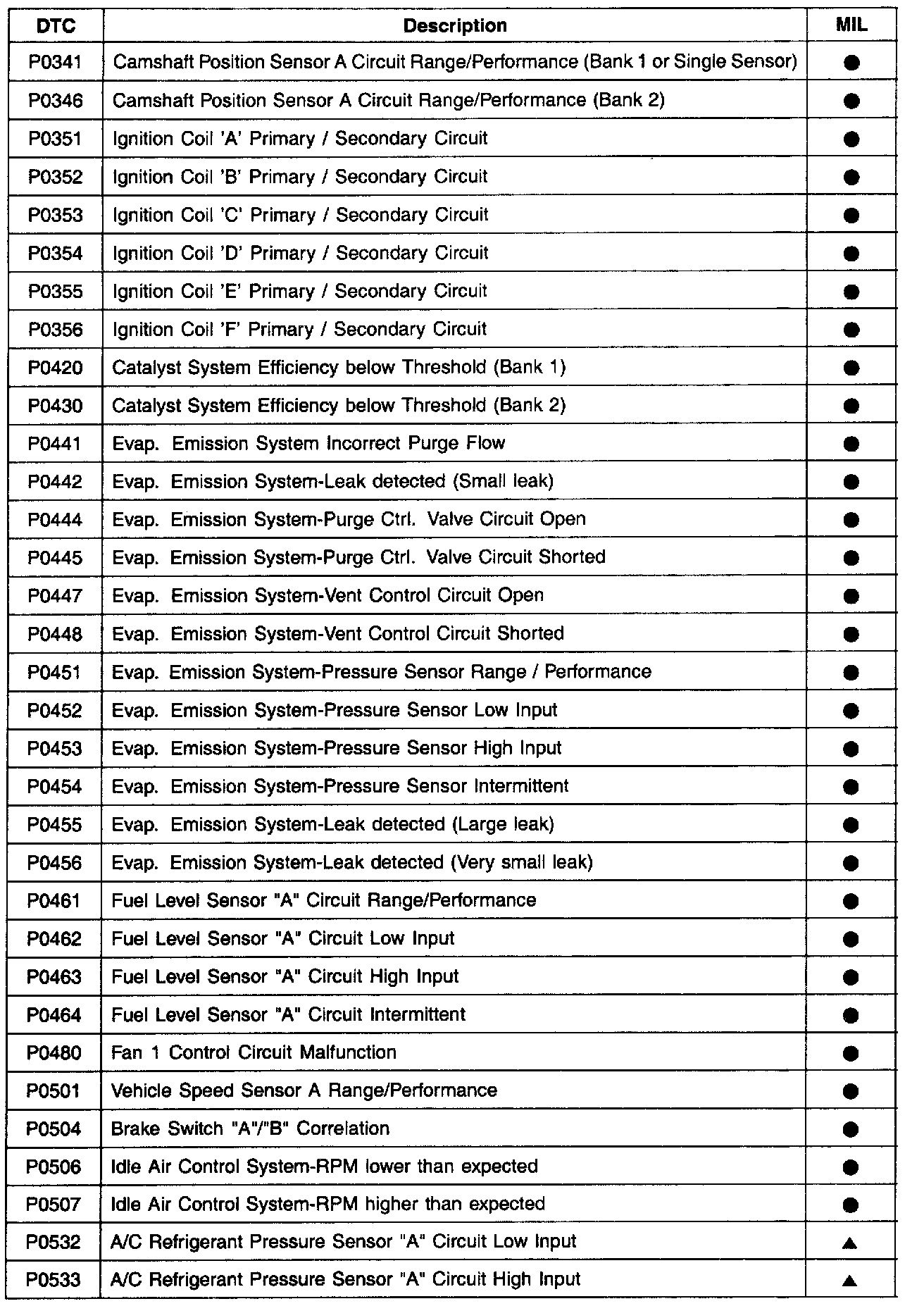 A L L Diagnostic Trouble Codes ( DTC )