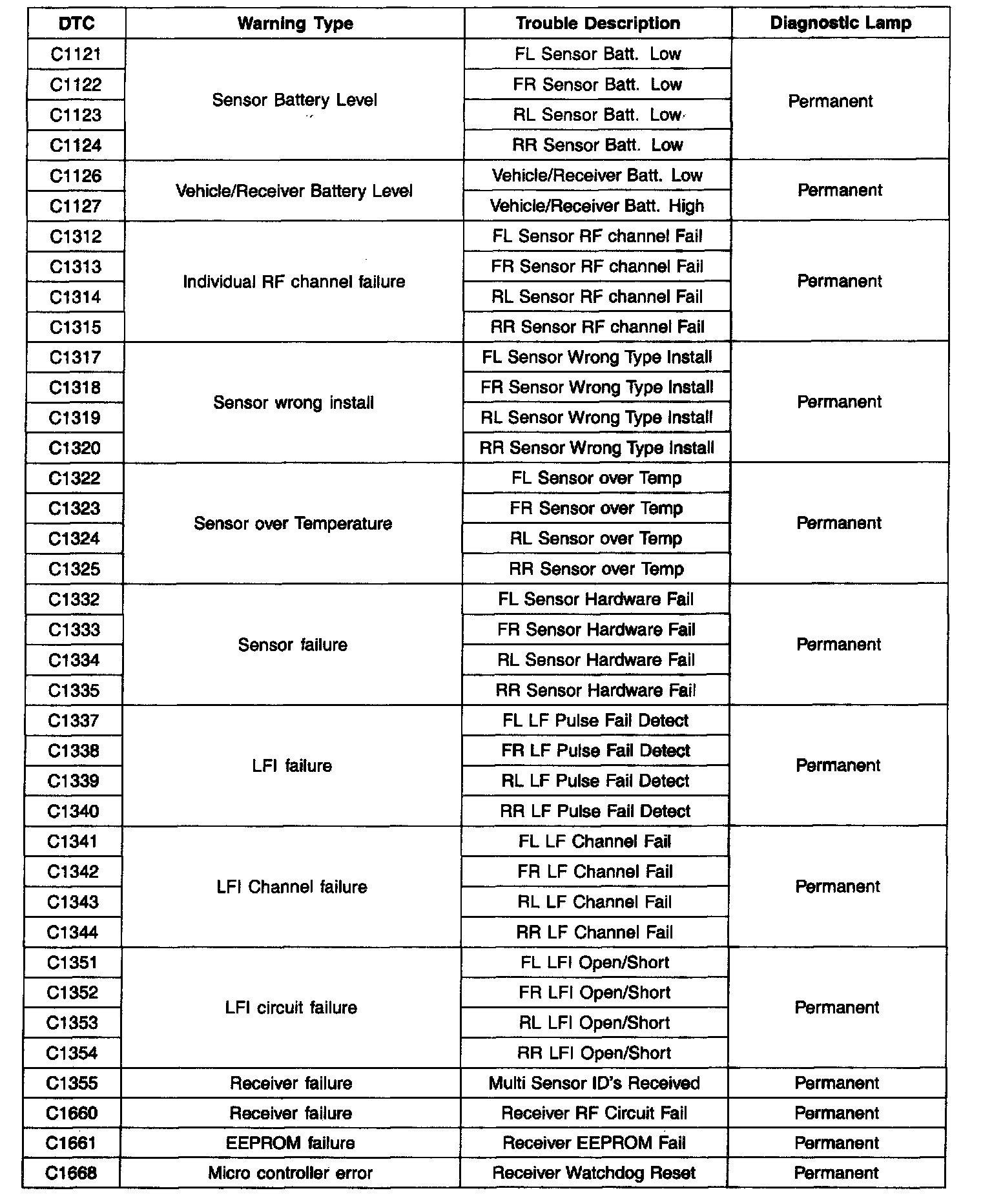 Diagnostic Trouble Code Descriptions