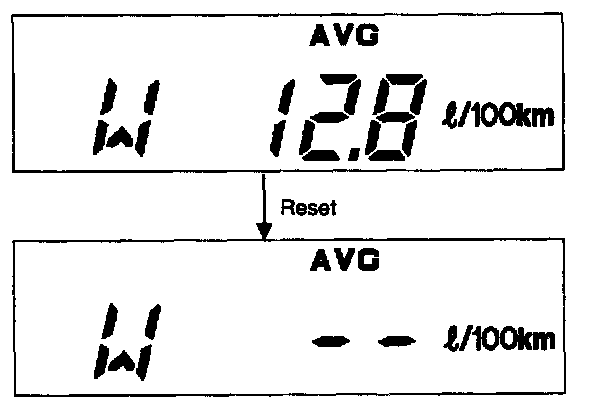 Press the reset button for less than 4 sec, when the average fuel consumption is being displayed, clears the average fuel consumption to "- -" until the vehicle is moved to 0.3 miles (500 m).